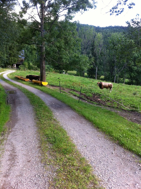 Hier die Naturstrasse die zum Hof führt. von da geht es noch 200-250 Höhenmeter durch den Wald bis zur Bergweide.