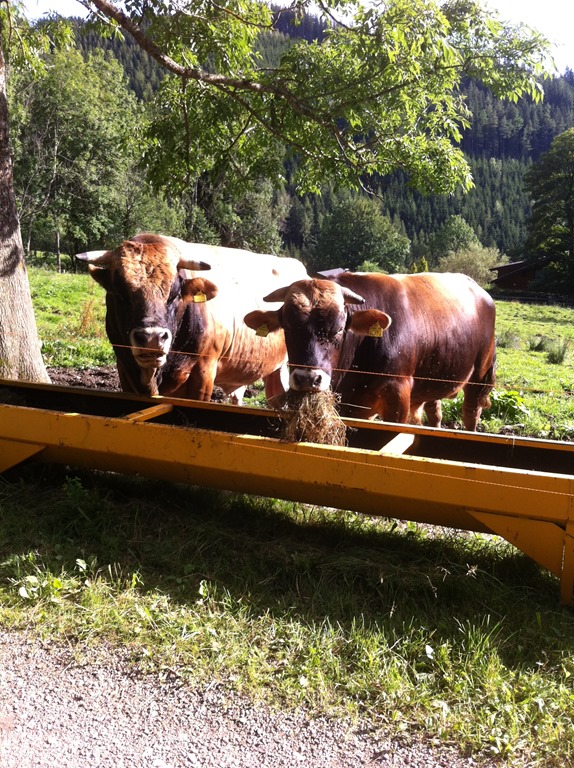 Diese zwei Stiere sind zahm. Ohne Nasenring geht es auch, wie man sehen kann. Mein Cousin hat den Hof auf Bio Landwirtschaft und Mutterkuh umgestellt. Seine Tiere wachsen Artgerecht und in Freiheit auf. Sie kennen keinen Schmerz. Die Kälber bleiben bei den Kühen und sind vom Frühling bis Herbst auf der Weide.