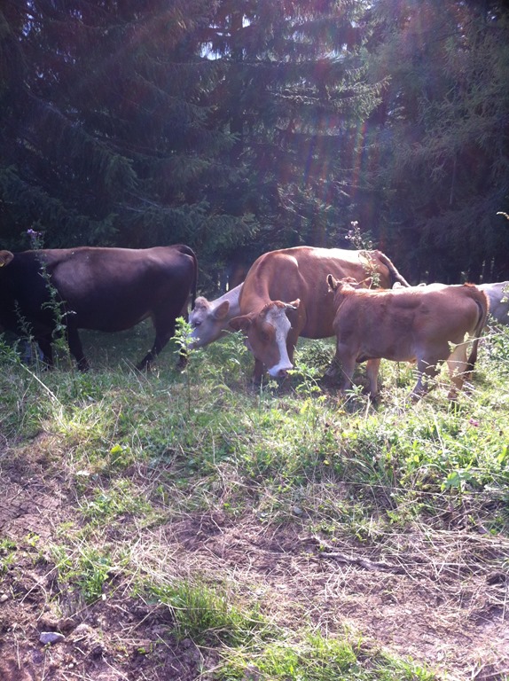 Dieses Stierkalb mit Mutterkuh, wurde im Frühling geboren. Ich habe es gesehen als es eine Woche alt war.