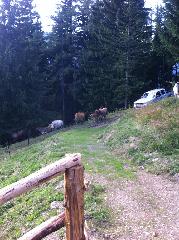 Die Auffahrt zur Bergweide. Es war wirklich ein Abenteuer, durch den Wald den Berg hinauf. Mit meinem Auto (Fiat 500) hätte ich es nicht geschafft. Mir reichte schon der Weg zum Hof. Der auf über 1000 Meter liegt.
