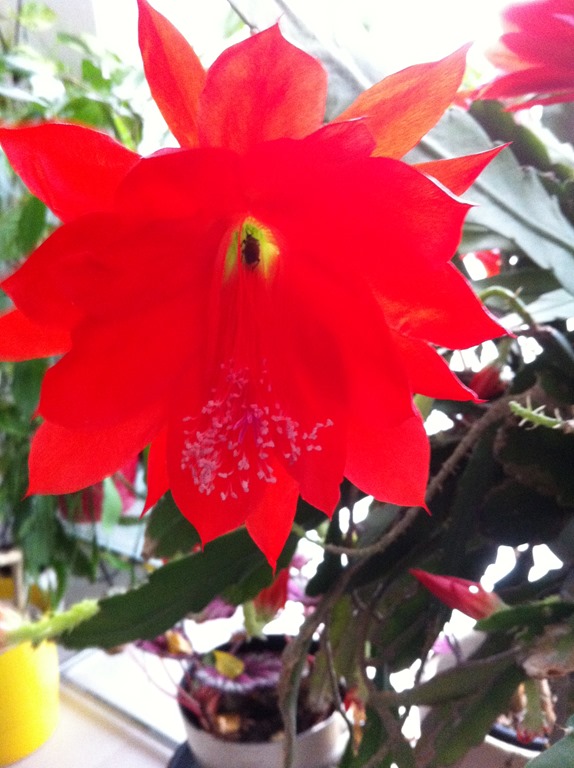 Bis jetzt hat er nur im Juni-Juli geblüht. Kurz vor Weihnachten, ich traute fast nicht meinen Augen als ich die Knospen sah. Es sind über fünfzig. Und jetzt zum Jahreswechsel sind sie zum Teil aufgeblüht. Noch nie sah ich diese Art im Winter blühen. Jede Blühte ist um die zehn Zentimeter groß.